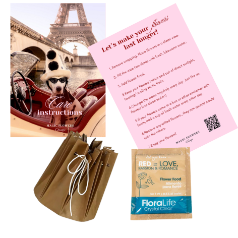 Flower Food: This special solution nourishes your blooms and helps maintain their beauty and freshness. Simply mix the flower food with water, and watch your flowers flourish!