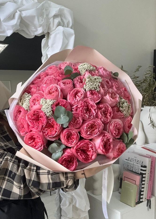 An exquisite ode to romance and refinement, this bouquet features lush, fully bloomed garden roses in captivating shades of rich pink and soft blush. Known for their layered, ruffled petals and enchanting fragrance, garden roses are the epitome of luxury and timeless beauty.